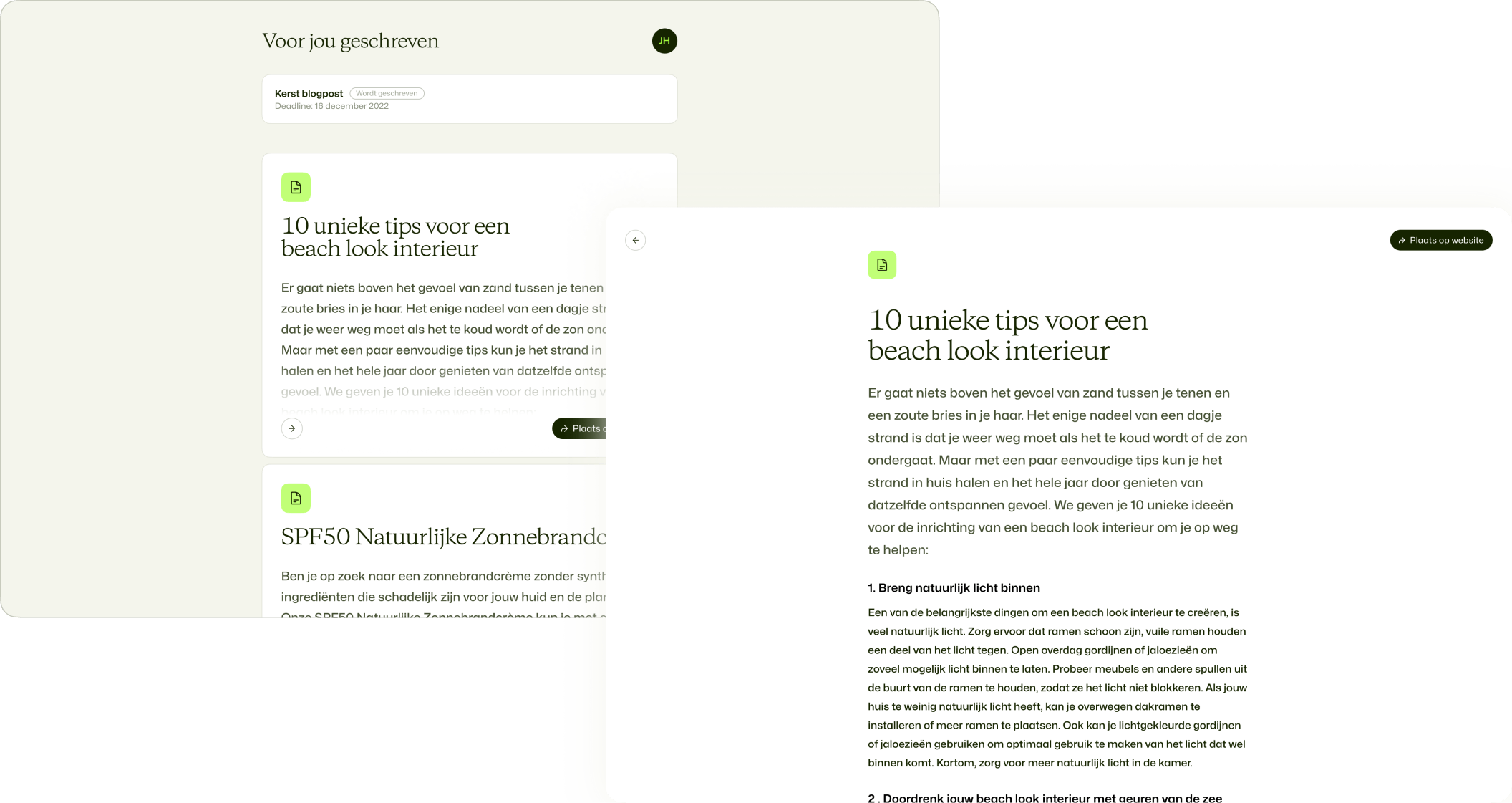 Samen kiezen we een onderwerp. Wij schrijven de blogpost en sturen deze rechtstreeks naar je toe via ons platform. In een handomdraai zet je het live op je website.